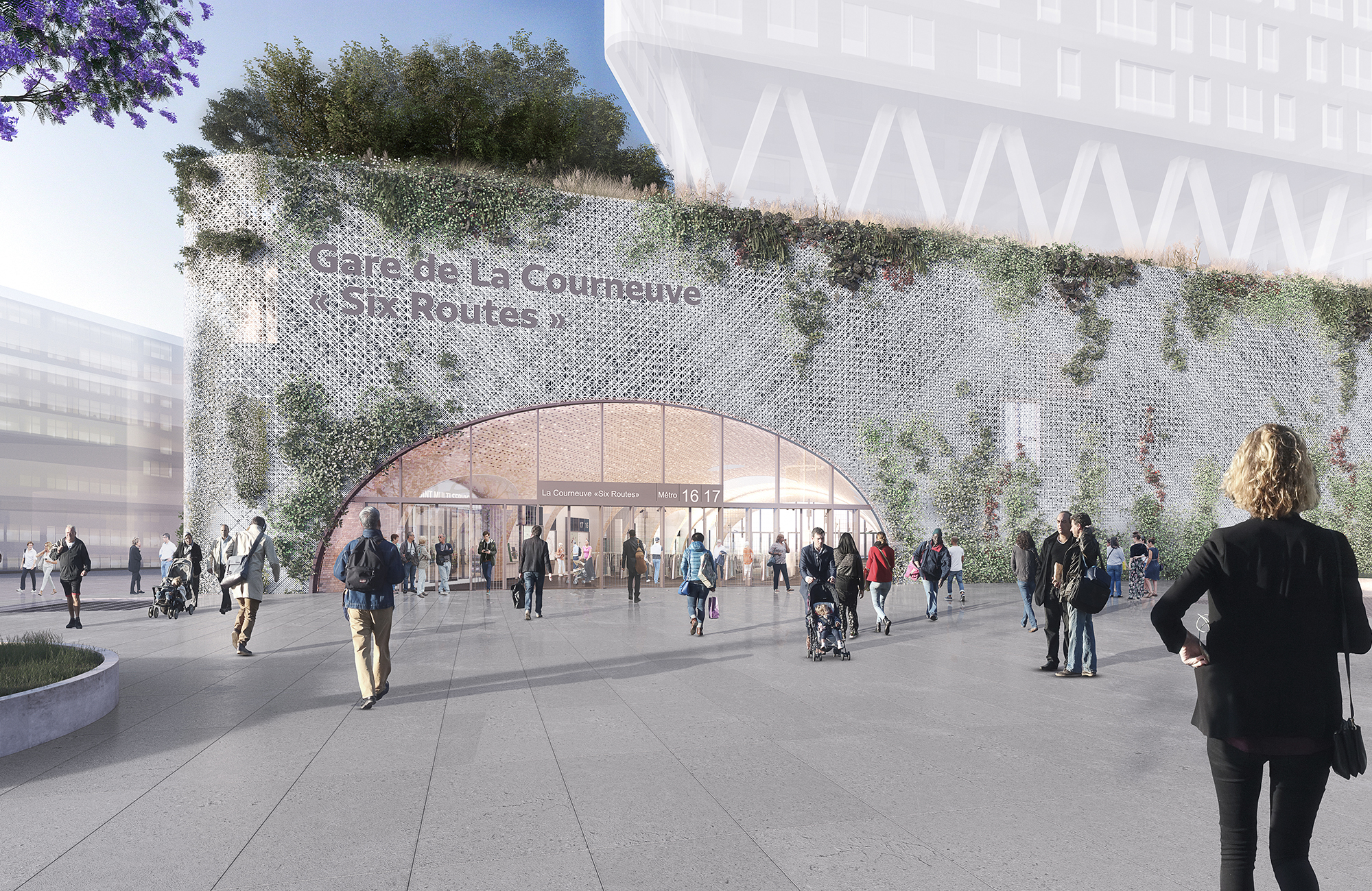 La brique en écho au passé ouvrier de la Courneuve, la voûte qui incarne l’espace public accueillant. Par le jeu de ces deux emblèmes simples et lisibles, nous avons souhaité que la gare devienne un lieu chaleureux et fédérateur pour la commune. Enveloppante, la voûte forme un « déjà-là », une architecture séculaire qui dégage douceur et fluidité de l’espace.